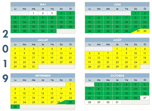 - Tarifs saison 2019 :